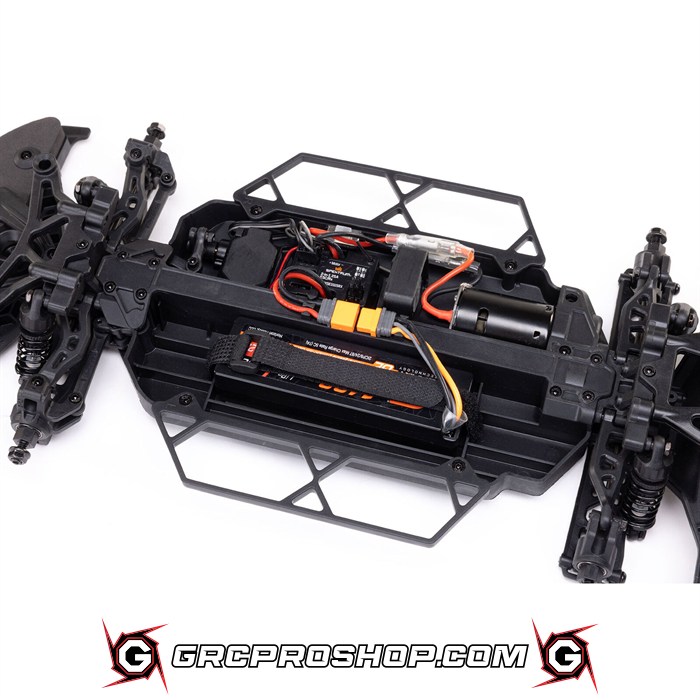 Straight out of the box, the Asphalt Late Model GROM is fully assembled and finished with an officially licensed JRM race livery. The new clipless body mounting system makes battery changes and maintenance faster than ever. The updated Spektrum 2-in-1 ESC/receiver includes a standard bind port perfect for racing transponders used in organized competition. Drive it. Tune it. Race it. Start building your legend today!